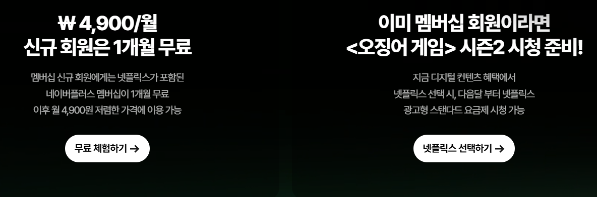 네이버 플러스 멤버십 월 4,900원 신규 회원에게는 넷플릭스가 한 달 무료.