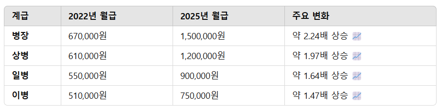 병사 월급 비교 (2022년 vs. 2025년)